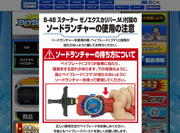 At the same time, it can be difficult to develop fun and exciting toys by focusing on safety alone. For example, to ensure children can play safely with our BEYBLADE BURST range without losing the fun burst feature, internal teams conduct multiple discussions and tests at every stage of the development process from planning, materials procurement, design and mockup, right through to the type of warnings included in the instruction manual or on the website.