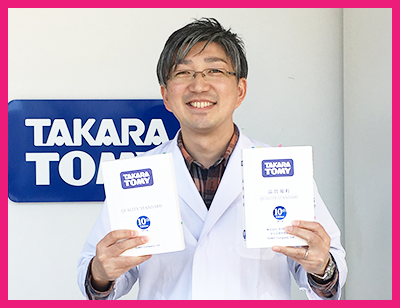 I am responsible for quality assurance across all product stages from planning and development through point of sale. I am also responsible for updating and revising our in-house product quality rules to enhance both the unique enjoyment of TOMY toys and the brand’s dedicated commitment to superior quality toy-making. In testing, we use TOMY’s own quality rules, which are stricter than the industry standards, and imagine how a child might use a toy so we can check its safety more accurately. Pulling this all together is a real challenge, but I feel people across the Group now understand the importance of timely revisions to quality rules. We adhere to these thorough safety management rules every day in our factories in the making of toys that children can really have fun playing with.
