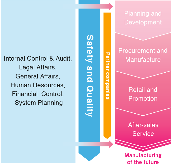 Toys are a precious source of fun play for children, and, for that very reason, they must never cause injury or accident. The TOMY Group channels considerable resources and energy into creating toys for children to play safely and securely. We do that by systematically aligning the sequential toy-making stages from planning through to production under our own product safety and quality management rules, so we can actively preempt problems and offer greater toy security.