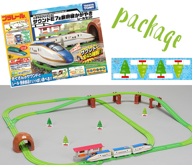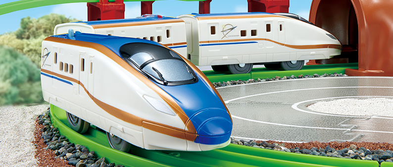 The E7 Series Shinkansen Kagayaki rail set with sound has incorporated such new environmental features, but PLARAIL has been promoting eco-friendly play ever since its first release in 1959. We have carefully maintained the original specifications, meaning you can link rail track retailed today with that retailed nearly 60 years ago! Take good care of your PLARAIL and children could get to play with their parent’s or even their grandparent’s rail track.