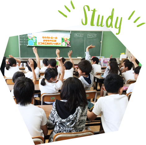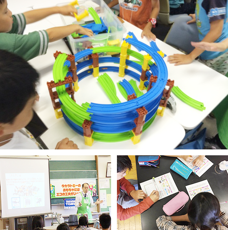 Back in December 2012, at the Eco-Product exhibition, an elementary school teacher told us of their desire to create some practical lesson plans on recycling using PLARAIL products. They asked if they could borrow some of the film roll and pellets used in making the toys. We were happy to help and were delighted to hear later how the materials had helped children grasp the fundamental ideas. We started to explore the potential benefits of using toys as teaching materials and decided to launch our educational support programs using Eco Toys.