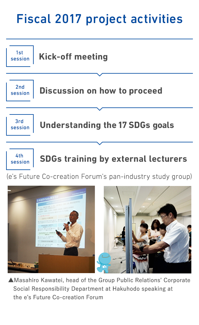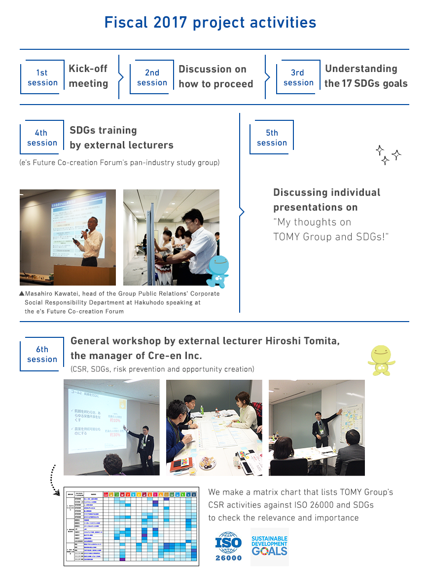 The group-wide project was officially launched in April 2016 after preparatory project members pinpointed target activities based on our policy and three pillars of social responsibility. In the first year, the project focused on reorganizing past and current activities according to the ISO 26000 Guidance on Social Responsibility to clearly define the links between our core business and society, and expanding the disclosure of social responsibility-related information.