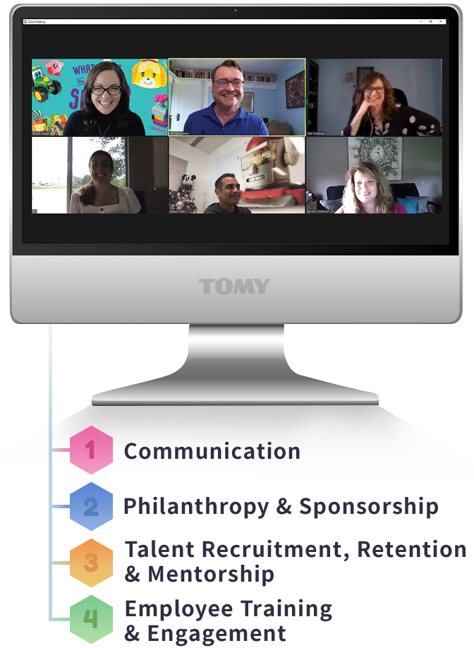 Responsible for overseas business activities, TOMY International (TI) recognizes the importance of each of these key attributes. Guided by this understanding, TI established a committee to promote diversity and inclusion. While extending well beyond national boundaries, this initiative is centered in the U.S., U.K., and Europe. Here, we introduce the wide array of activities undertaken by the Committee.
