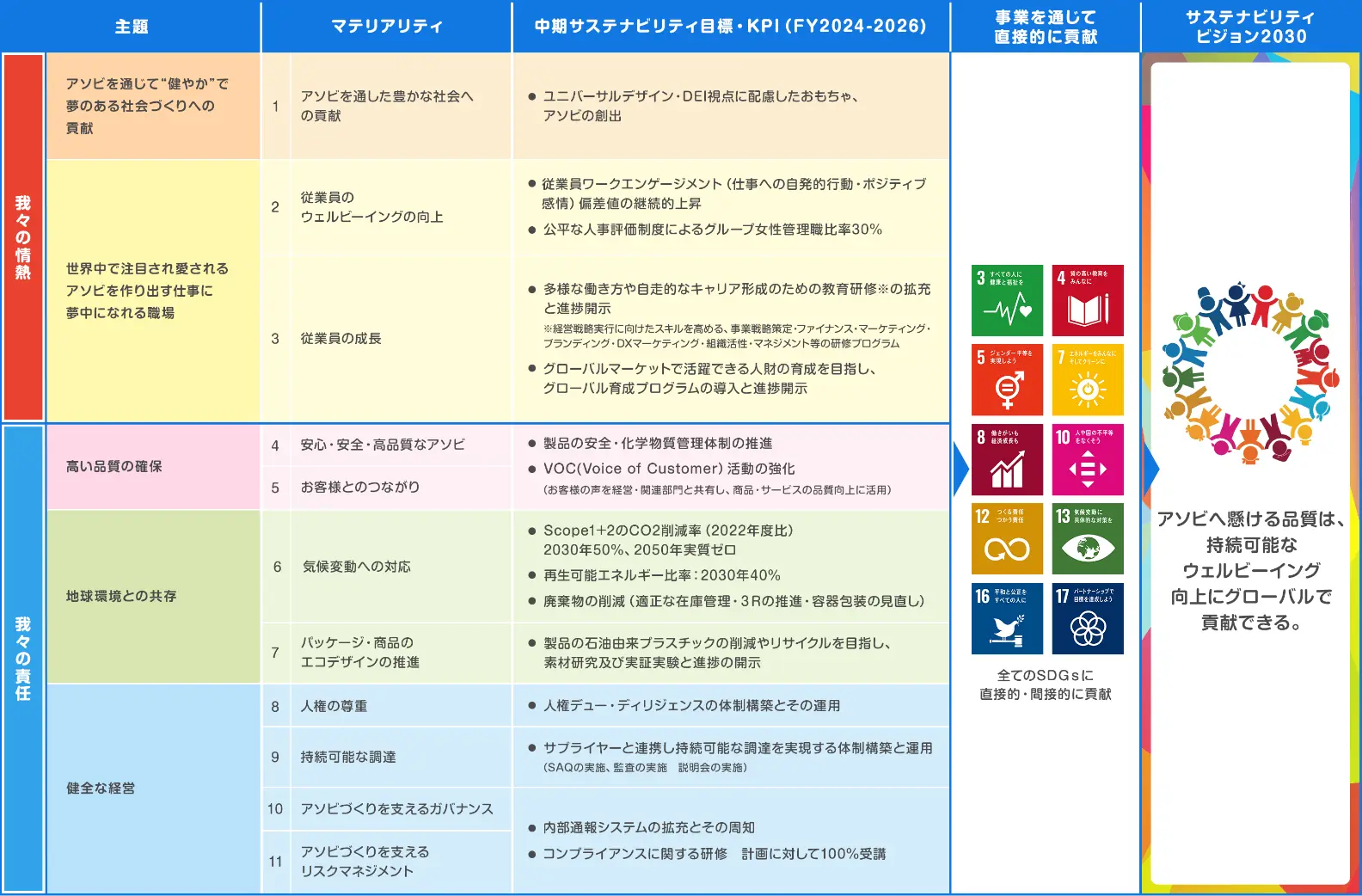 私たちは、“アソビ”を通じて持続可能な社会の実現に貢献し、そして自らも持続可能な企業へと進化してまいります。