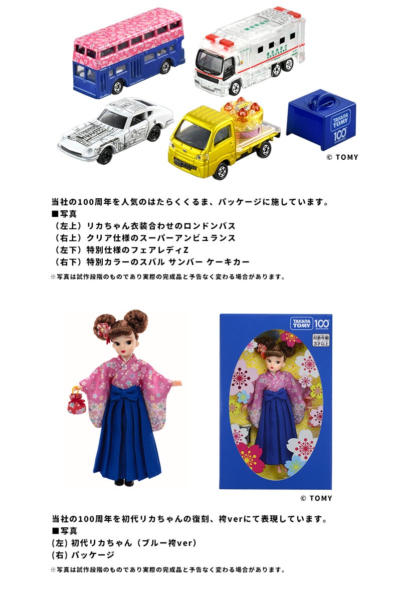 オリジナル「トミカ」4台セットおよびオリジナル「リカちゃん」 ※上記オリジナル「トミカ」4台セットと、復刻版リカちゃんを予定。 |